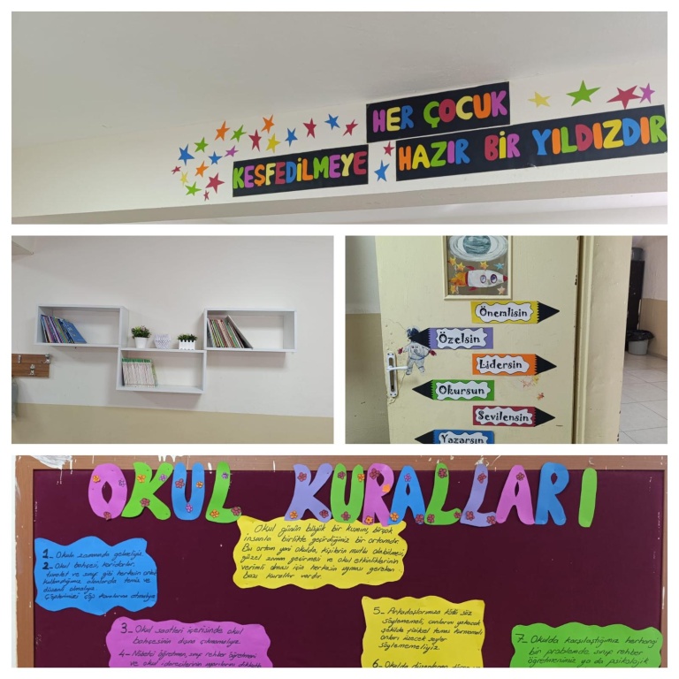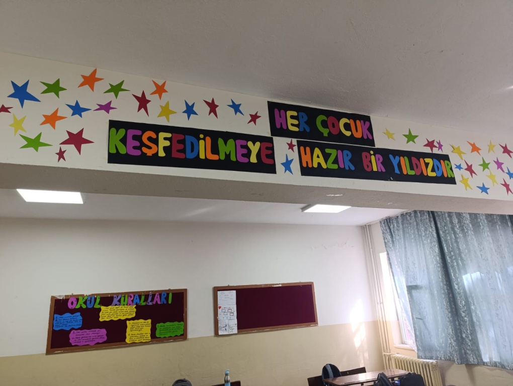 Okulumuzda 5/C sınıfımız sınıf rehber öğretmeni ve aynı zamanda Teknoloji Tasarım Öğretmenimiz olan Zeynep AKÇAY Hocamız rehberliğinde öğrencilerimiz ile birlikte süslenerek daha eğlenceli hale getirildi. Kapı, Duvar, Pano ve Kirişlere yapılan çeşitli tasarımlar ve duvara monte edilen kitaplık ile sınıfımız güzelleştirildi. Bu kapsamda Emeği geçen sınıfın sınıf rehber öğretmeni Zeynep AKÇAY Hocamıza ve desteklerini esirgemeyen Sosyal Bilgiler Öğretmenimiz Ferman PEKTAŞ Hocamıza okulumuz adına teşekkür ederiz.